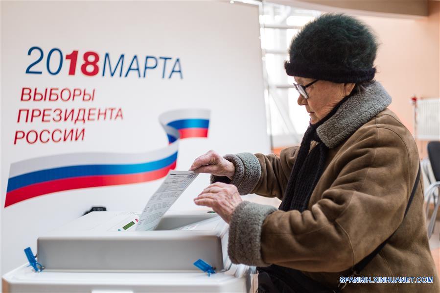 MOSCU, marzo 18, 2018 (Xinhua) -- Una mujer deposita su voto en una urna electoral en un centro de votación en Moscú, Rusia, el 18 de marzo de 2018. Se han instalado más de 97,000 estaciones de votación en el país, y más de 400 estaciones en el exterior. Los candidatos que contienden en la elección son el actual presidente ruso Vladimir Putin, quien participa como candidato independiente; Vladimir Zhirinovsky del Partido Demócrata Liberal de Rusia, y el empresario Pavel Grudinin nominado por el Partido Comunista de la Federación Rusa. Otros candidatos son Grigory Yavlinsky, del Partido Yabloko; el líder del Partido del Crecimiento, Boris Titov; el jefe de la Unión Nacional Rusa, Sergey Baburin; la presentadora de televisión Ksenia Sobchak; y el jefe de los Comunistas de Rusia, Maxim Suraikin. (Xinhua/Wu Zhuang)