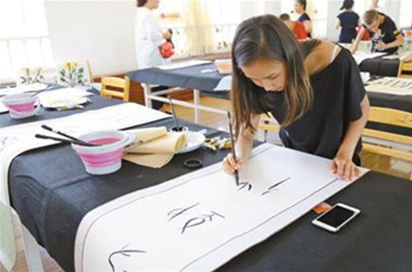 Los estudiantes rusos aprenden a escribir caracteres chinos con un pincel. Fuente de la foto: Pueblo en Línea