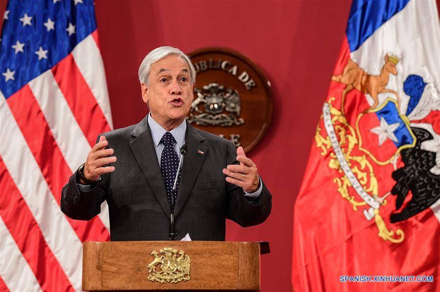 SANTIAGO, marzo 21, 2018 (Xinhua) -- El presidente de Chile, Sebastián Pi?era, participa durante una conferencia de prensa después de una reunión con el secretario del Tesoro de Estados Unidos, Steven Mnuchin, llevada a cabo en el Palacio de La Moneda, en Santiago, capital de Chile, el 21 de marzo de 2018. (Xinhua/Jorge Villegas)
