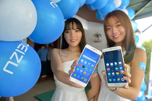 Modelos promocionan los nuevos modelos de teléfonos inteligentes presentados en Malasia por la empresa china Meizu Telecom Equipment, Kuala Lumpur, Malasia. [Foto: Xinhua]