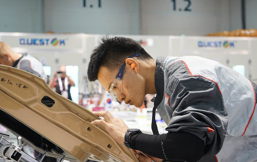 El pintor de coches Jiang Yingcheng compite en la 44a edición de World Skills International en Abu Dhabi, el 18 de octubre de 2017. [Foto / VCG]