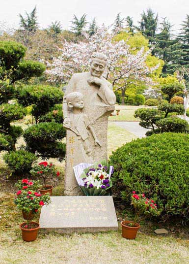 Una estatua de Zhang Leping con el personaje Sanmao sobre su tumba en el cementerio Wanguo, también conocido como el cementerio Song Qinglin, en Shanghai. [Foto / IC]