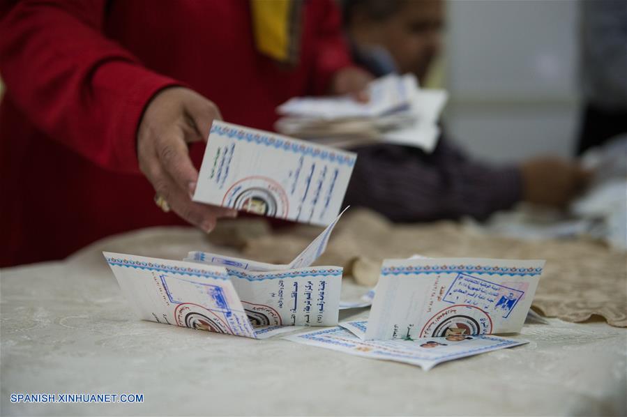 EL CAIRO, marzo 28, 2018 (Xinhua) -- Un trabajador cuenta votos en un centro de votación en El Cairo, Egipto, el 28 de marzo de 2018. De acuerdo con información de la prensa local, los centro de votación cerraron el miércoles a las 10 p.m. hora local, poniendo fin a la elección presidencial. (Xinhua/Meng Tao)