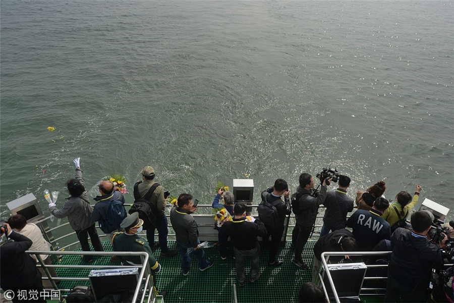 Se celebra un entierro en el mar celebrado en el barco Guobin 9, el 2 de abril de 2018. [Foto / Xinhua]