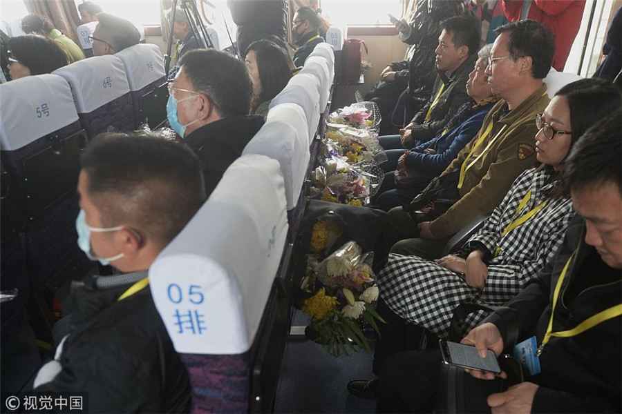 La gente viaja en el Guobin 9 para asistir a un entierro en el mar, el 2 de abril de 2018. [Foto / Xinhua]