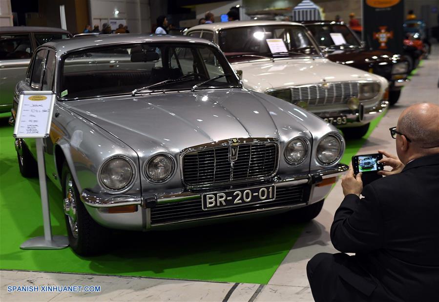 LISBOA, abril 7, 2018 (Xinhua) -- Imagen del 6 de abril de 2018 de personas observando un automóvil clásico durante el XIII Salón del Automóvil Clásico de Lisboa, en Lisboa, Portugal. El evento de tres días de duración abrió el viernes en Lisboa. (Xinhua/Zhang Liyun)