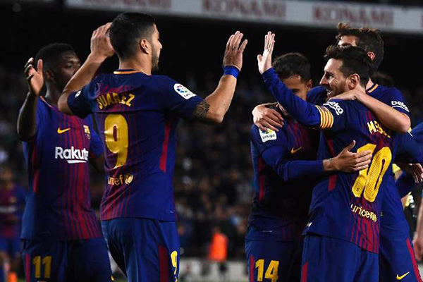 Los azulgranas lideran el campeonato con doce puntos sobre el Atlético de Madrid (2o) y 16 sobre el Real Madrid (3o), que se enfrentan el domingo en el derbi estrella de esta 31 jornada liguera.