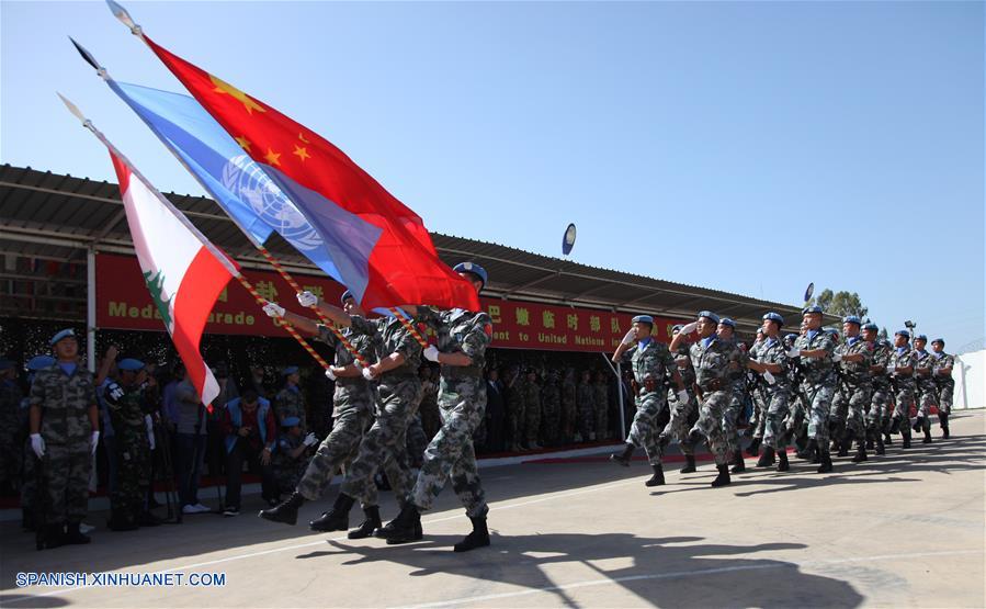 BEIRUT, 6 abr (Xinhua) -- Los 410 miembros del 16° contingente de elementos de mantenimiento de paz de China en Líbano recibieron hoy la Medalla de Honor de Paz de la ONU, un mes antes de transferir la autoridad al contingente número 17.