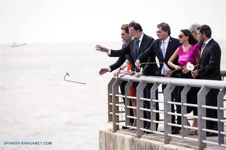 BUENOS AIRES, abril 11, 2018 (Xinhua) -- El presidente del gobierno espa?ol, Mariano Rajoy (2-i) realiza una ofrenda floral junto al vicealcalde de la Ciudad de Buenos Aires, Diego Santilli (i) y al secretario de Derechos Humanos de Argentina, Claudio Avruj (3-d), durante la visita al Parque de la Memoria en la ciudad de Buenos Aires, capital de Argentina, el 11 de abril de 2018. (Xinhua/Martín Zabala)