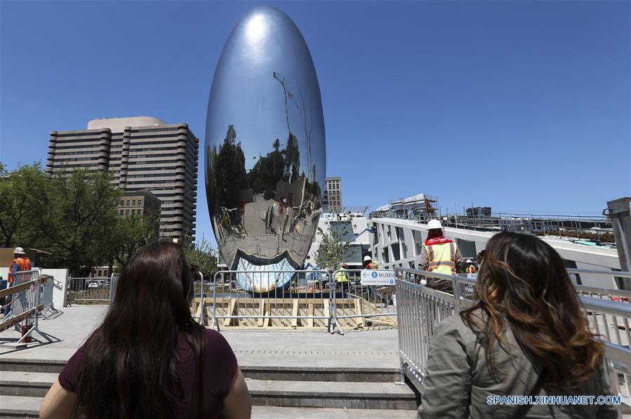HOUSTON, abril 11, 2018 (Xinhua) -- Imagen del 10 de abril de 2018 de la escultura recién instalada "Columna de Nubes", en el Museo de Bellas Artes de Houston (MFAH, por sus siglas en inglés), en Houston, Texas, Estados Unidos. La escultura inoxidable del artista Anish Kapoor brinda a Houston su propio paisaje en forma de frijol. (Xinhua/Yi-Chin Lee)