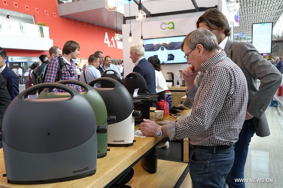 Empresarios seleccionan mercancías durante la Feria de Importación y Exportación de China que se celebra en Guangzhou, capital de la provincia de Guangdong. Este encuentro comercial, inaugurado el domingo, reúne a más de 25.000 empresas expositoras nacionales y extranjeras. 15 de abril del 2018. (Foto: Xinhua/ Lu Hanxin)