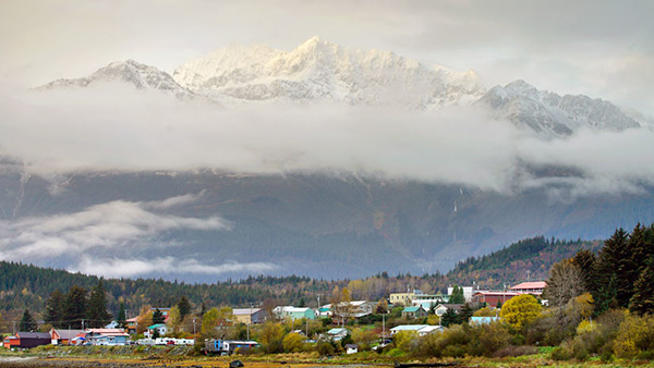 La cordillera de Chilkat se ve por encima de la ciudad de Haines, Alaska, el 7 de octubre de 2014. Bob Strong / Reuters