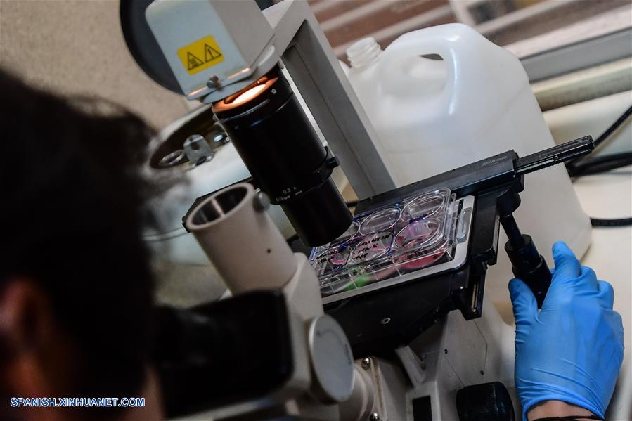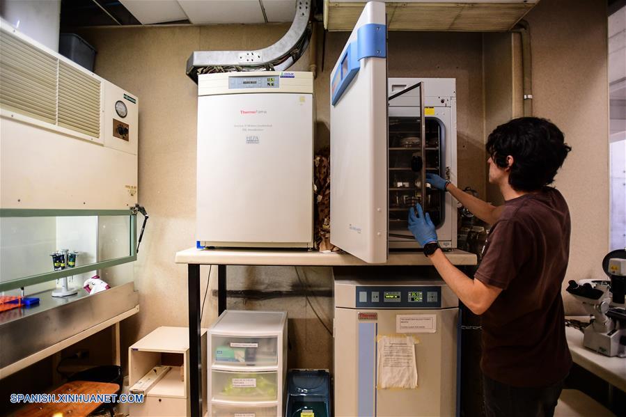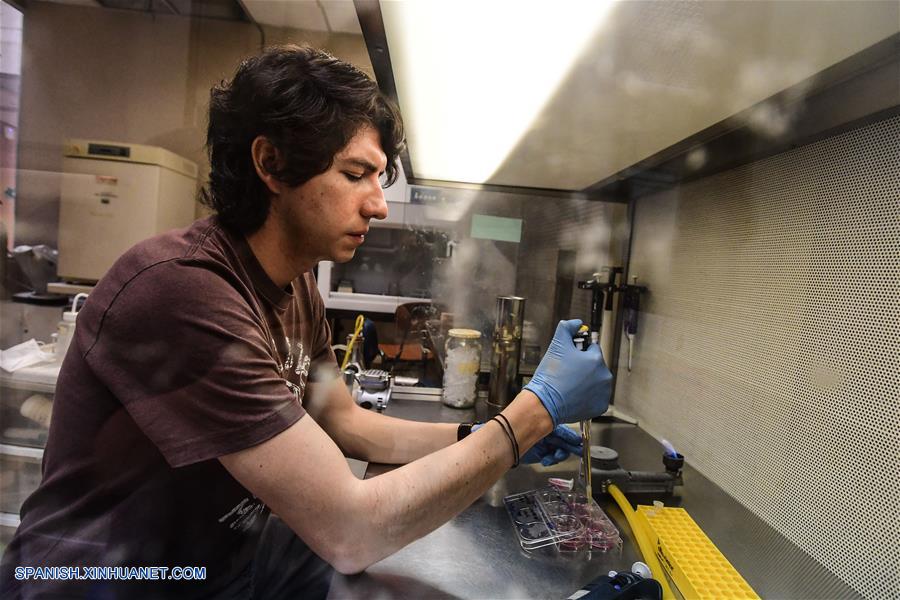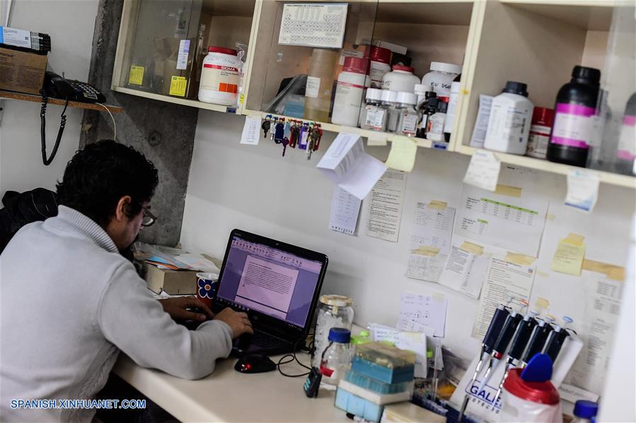 SANTIAGO, abril 16, 2018 (Xinhua) -- Imagen del 11 de abril de 2018, de un estudiante trabajando en el proyecto "1,000 genomas", en un laboratorio en las intalaciones del Centro de Gerociencia, Salud Mental y Metabolismo (GERO) de la Universidad de Chile, en Santiago, capital de Chile. Chile conocerá en detalle por primera vez la genética de sus habitantes gracias al proyecto "1,000 genomas", a través del cual se busca secuenciar los genomas de 1,000 personas y de 1,000 especies vegetales, animales y microorganismos. Involucrados en el proyecto aseguraron que uno de los objetivos del plan es conocer si en Chile existe un mapa genético, con la finalidad de caracterizar las principales enfermedades que afectan al país. "El proyecto nace con la finalidad de entender cuál es el acervo genético de nuestro país. La naturaleza de nuestro país, aislado por un lado por el mar y, por el otro, por la cordillera", dijo a Xinhua Christian González, director del Centro de Gerociencia, Salud Mental y Metabolismo de la Universidad de Chile. (Xinhua/Jorge Villegas)