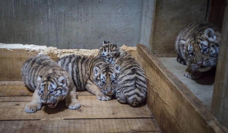 Estos cachorros de tigre siberianos nacieron en el Jardín Zoológico y Botánico de Qiqihar, provincia de Heilongjiang, en el noreste de China. [Foto proporcionada a chinadaily.com.cn]