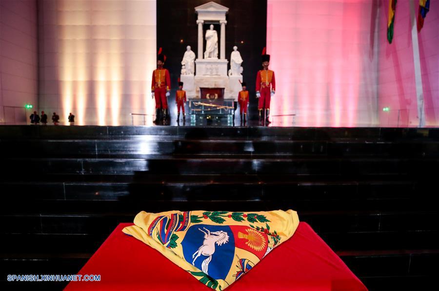CARACAS, abril 19, 2018 (Xinhua) -- Imagen cedida por el Ministerio del Poder Popular para Relaciones Interiores, Justicia y Paz de Venezuela, de la ceremonia de izada de la bandera nacional venezolana para el comienzo de la conmemoración los 208 a?os del 19 de abril de 1810, fecha en la que el pueblo venezolano marcó el inicio de la lucha por la Independencia contra el imperio espa?ol, siendo llevada a cabo en el Panteón Nacional en Caracas, capital de Venezuela, el 19 de abril de 2018. El evento fue presidido por los ministros del Interior, Justicia y Paz, Néstor Reverol, de Defensa, Vladimir Padrino López, de Educación, Elías Jaua, así como el comandante estratégico operacional de la Fuerza Armada Nacional Bolivariana, almirante Remigio Ceballos, y otros integrantes del gabinete ejecutivo, de acuerdo con información de la prensa local. (Xinhua/Ministerio de Interior y Justicia de Venezuela)