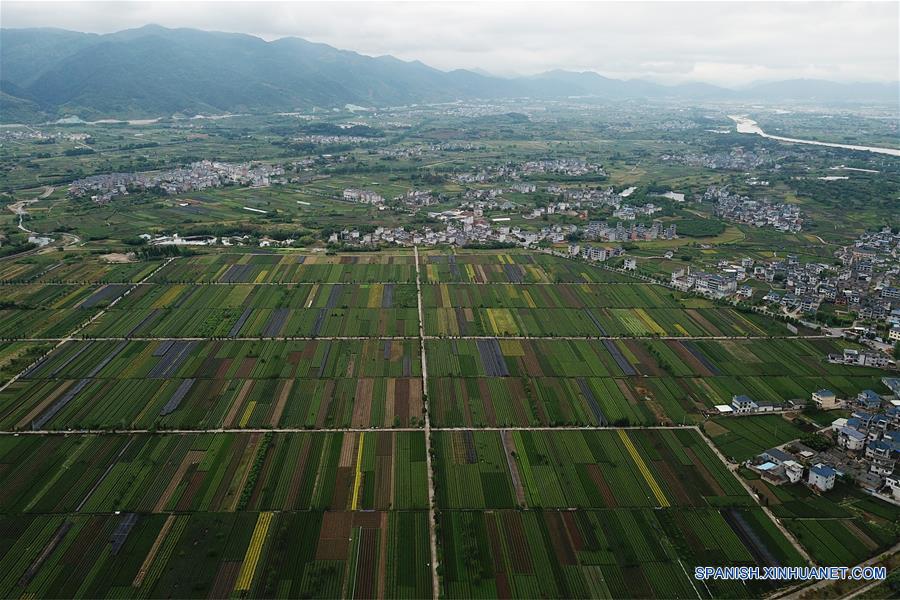 Imagen aérea de la aldea Shimenwei del municipio de Zhaitan, en el condado de Songyang, en la provincia de Zhejiang, en el este de China, el 24 de abril de 2018. Desde 2003, Zhengjiang ha venido implementando un proyecto para reformar el entorno de vida de sus poblados. Hasta finales del a?o pasado, un 97 por ciento de las aldeas de la provincia habían completado la revisión. (Xinhua/Huang Zongzhi)