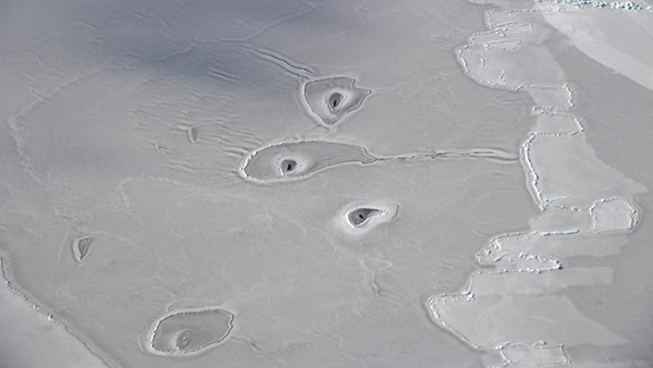 Houston,25/04/2018(El Pueblo en Línea)-Después de diez a?os y tras muchas horas de vuelo sobre el ártico, la Operación IceBridge de la NASA -encargada de realizar el mapeo del hielo terrestre y marino de la región- ha descubierto unos extra?os agujeros en el hielo, con formas que hasta el momento nunca se habían observado, según La Vanguardia.