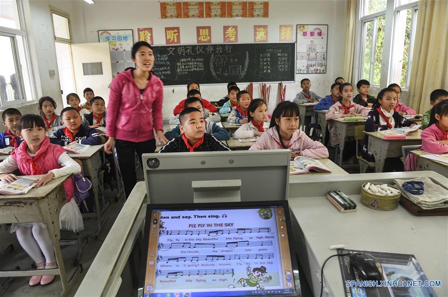 SICHUAN, mayo 1, 2018 (Xinhua) -- Imagen del 25 de abril de 2018 de estudiantes de quinto a?o asistiendo a una clase de inglés en la Escuela Primaria Malu, en el condado de Qingchuan, provincia de Sichuan, en el suroeste de China. Este a?o marca el 10 aniversario del terremoto de 8.0 grados de magnitud que sacudió la provincia de Sichuan, en el suroeste de China, el 12 de mayo de 2008. Solo cuatro días después del terremoto, Xu Guang y sus 100 compa?eros de clase de la Escuela Primaria Malu sostuvieron parcartas voluntariamente para mostrar gratitud a quienes daban la mano en la reconstrucción de su escuela, que quedó en ruinas durante el terremoto. El movimiento de los ni?os causó sensación en aquel a?o. En el transcurso de 10 a?os, la ayuda a la escuela nunca se detuvo. Los apoyos a nivel nacional han permitido la construcción de un campus moderno totalmente equipado con 536 estudiantes. (Xinhua/Tao Ming)