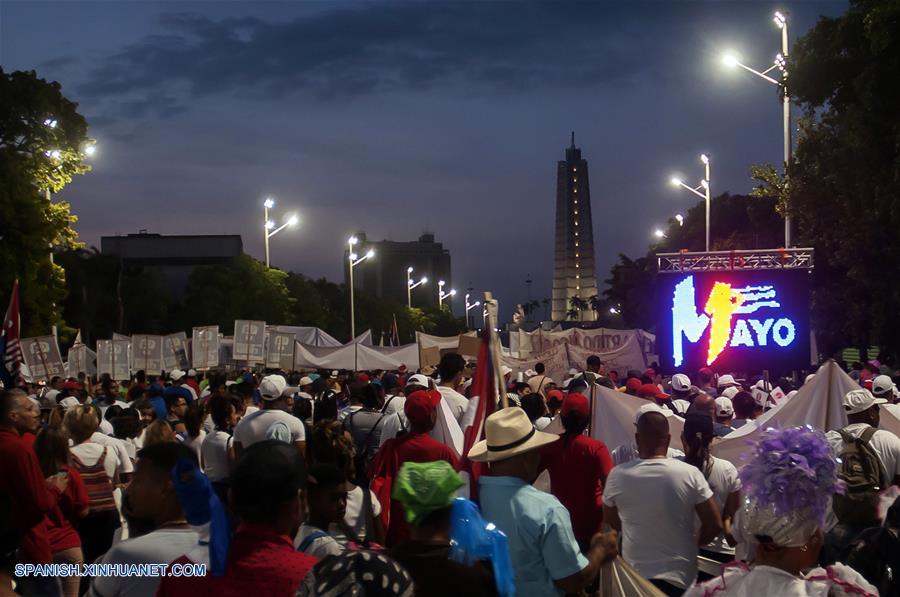 LA HABANA, mayo 1, 2018 (Xinhua) -- Trabajadores se reúnen previo al inicio del desfile del primero de mayo en el marco de la celebración del Día del Trabajo, en la Plaza de la Revolución José Martí, en La Habana, Cuba, el 1 de mayo de 2018. El primer secretario del Partido Comunista de Cuba (PCC), Raúl Castro, y el presidente cubano, Miguel Díaz-Canel, asistieron el martes al acto central y desfile por el Día Internacional de los Trabajadores, en la Plaza de la Revolución José Martí de La Habana. Miles de obreros y sus familiares se concentraron desde horas de la madrugada en los alrededores de la emblemática plaza, convocados por la Central de Trabajadores de Cuba (CTC) bajo el lema "Unidad, compromiso y victoria". (Xinhua/José Tito Meri?o/Prensa Latina)