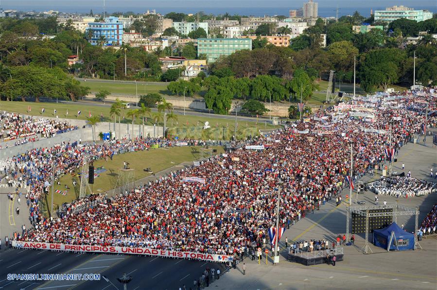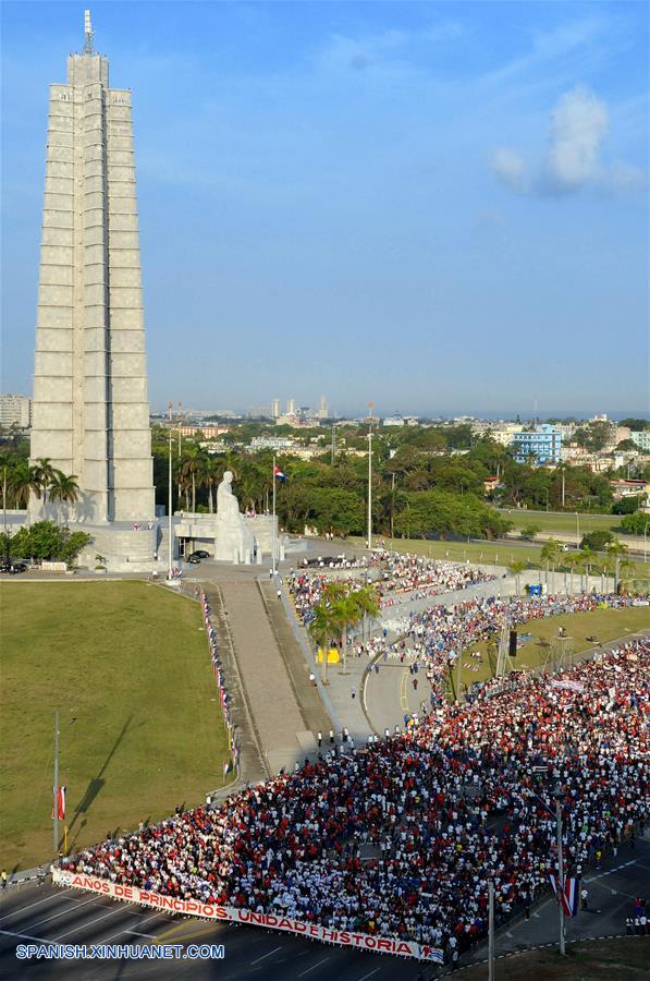 LA HABANA, 1 may (Xinhua) -- El primer secretario del Partido Comunista de Cuba (PCC), Raúl Castro, y el presidente cubano, Miguel Díaz-Canel, asistieron hoy martes al acto central y desfile por el Día Internacional de los Trabajadores, en la Plaza de la Revolución José Martí de La Habana.