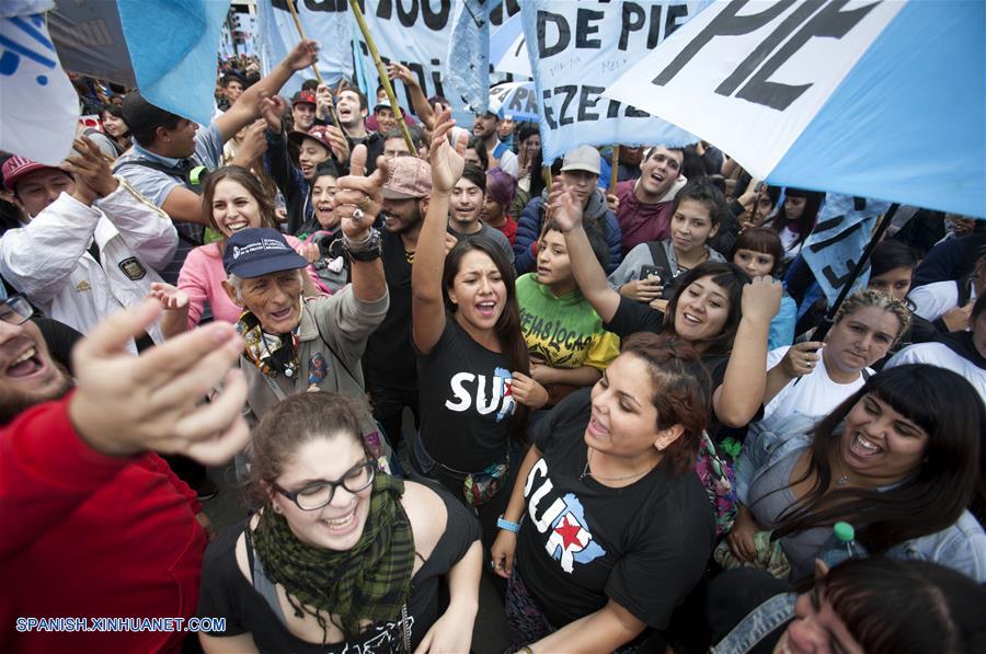 BUENOS AIRES, mayo 1, 2018 (Xinhua) -- Trabajadores participan junto a organizaciones sociales y sindicales durante una movilización conmemorativa del primero de mayo en el marco de la celebración del Día del Trabajo, en la ciudad de Buenos Aires, capital de Argentina, el 1 de mayo de 2018. (Xinhua/Martín Zabala)