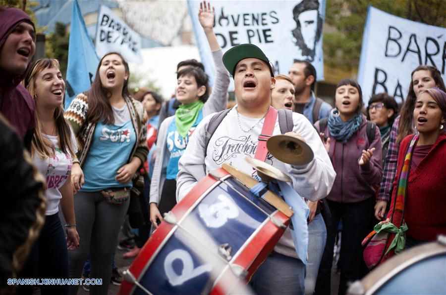BUENOS AIRES, mayo 1, 2018 (Xinhua) -- Trabajadores participan junto a organizaciones sociales y sindicales durante una movilización conmemorativa del primero de mayo en el marco de la celebración del Día del Trabajo, en la ciudad de Buenos Aires, capital de Argentina, el 1 de mayo de 2018. (Xinhua/Martín Zabala)
