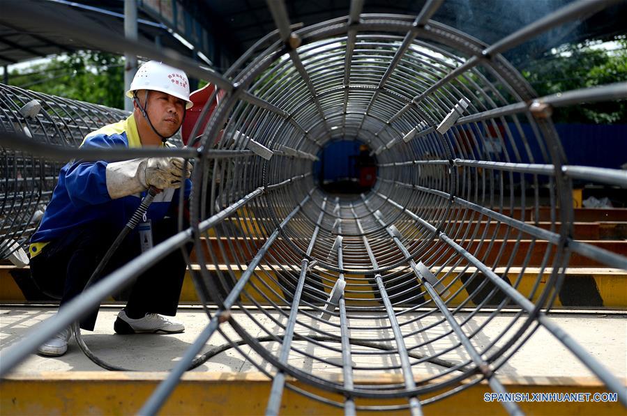 SHAANXI, mayo 1, 2018 (Xinhua) -- Un empleado realiza el trabajo de soldadura en un sitio de construcción de un proyecto ferroviario, en Xi'an, provincia de Shaanxi, en el noroeste de China, el 1 de mayo de 2018. Muchos trabajadores permanecieron en sus puestos en el Día Internacional del Trabajo 2018 mientras el país goza de tres días de vacaciones. (Xinhua/Liu Xiao)