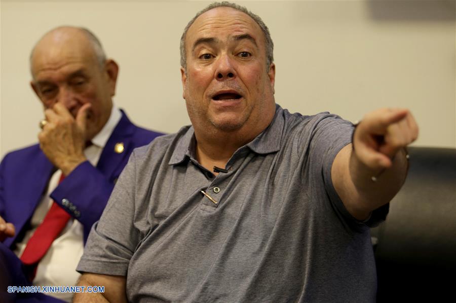 SANTO DOMINGO, mayo 2, 2018 (Xinhua) -- Imagen del 1 de mayo de 2018 del presidente de la Comisión de Industrias, Comercio y Zonas Francas del Senado de República Dominicana, Charles Mariotti (d), participando durante una entrevista exclusiva con Xinhua llevada a cabo en su oficina en Santo Domingo, República Dominicana. El presidente de la Comisión de Industrias, Comercio y Zonas Francas del Senado de República Dominicana, Charles Mariotti, expresó el martes su satisfacción por el deber cumplido tras el establecimiento de las relaciones diplomáticas entre este país caribe?o y China. "Podemos decir lo logramos", dijo en entrevista con Xinhua y recordó que el a?o 2012, pocos meses después de que asumiera su cargo el presidente Danilo Medina, éste le encomendó que viajara a China con el entonces ministro de Economía, Planificación y Desarrollo, con el fin de abordar con el país asiático el establecimiento de relaciones diplomáticas. (Xinhua/Roberto Guzmán)