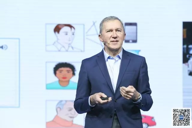 Tom Mitchell, profesor de la Escuela de Ciencias de la Computación de la Universidad Carnegie Mellon, durante su charla en la Conferencia Mundial de Internet móvil celebrada en Beijing, 27 de abril del 2018. (Foto: cortesía)
