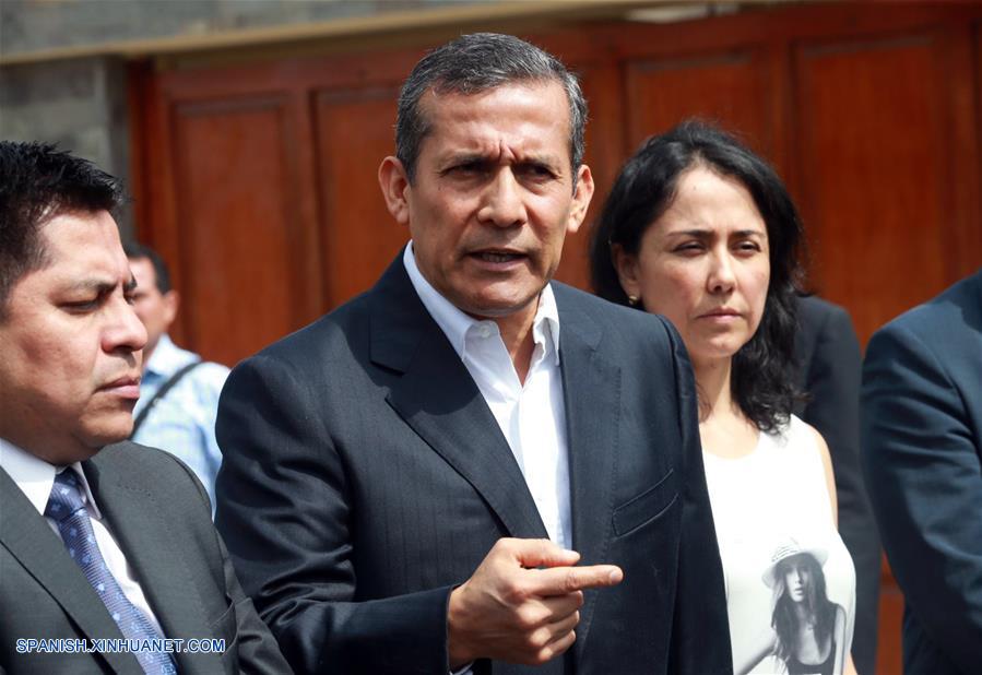 LIMA, mayo 7, 2018 (XinHua) -- El expresidente peruano, Ollanta Humala (c), y su esposa Nadine Heredia (d), participan en una conferencia de prensa luego de las medidas judiciales de incautación de su casa y otras propiedades, en Lima, Perú, el 7 de mayo de 2018. (Xinhua/Norman Córdova/ANDINA)