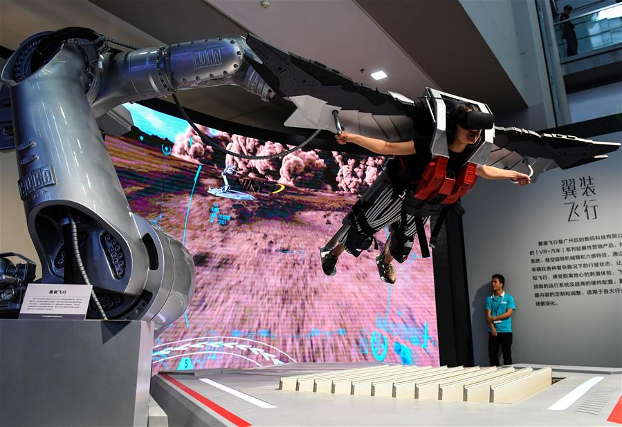 Una visitante experimenta los juegos de Realidad Virtual en la XIV Feria Internacional de Industrias Culturales de China (FIIC), en la ciudad de Shenzhen, provincia de Guangdong, en el sur de China, el 10 de mayo de 2018. La feria fue inaugurada el jueves en Shenzhen. (Xinhua/Mao Siqian)