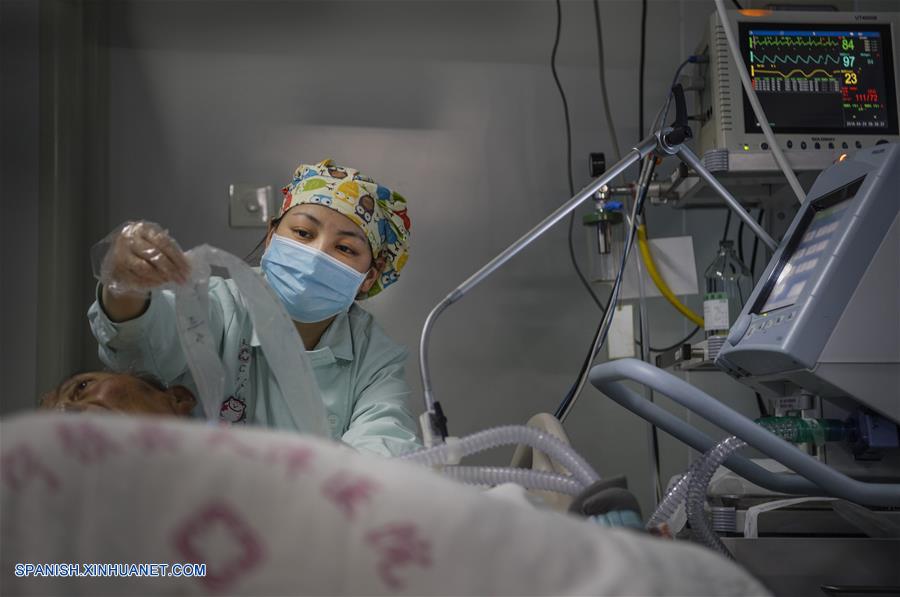 SHAANXI, abril 25, 2018 (Xinhua) -- Imagen del 24 de abril de 2018 de Li Haiping cuidando de un paciente en la Unidad de Cuidados Intensivos (UCI) del Hospital Tianjin, en el condado de Ningqiang, provincia de Shaanxi, en el noroeste de China. El reconstruido hospital cuenta con equipo médico avanzado. Luego de diez a?os de reconstrucción, las condiciones de vida han sido mejoradas y la economía ha repuntado fuertemente. Unos 113 sitios de reasentamiento fueron construidos y aproximadamente 23,000 familias se mudaron a viviendas nuevas. Unas 66 escuelas fueron reconstruidas y alrededor de 268 nuevas clínicas rurales fueron construidas. (Xinhua/Tao Ming)