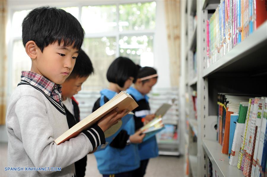SHAANXI, abril 26, 2018 (Xinhua) -- Imagen del 25 de abril de 2018 de estudiantes leyendo libros en la biblioteca de la escuela primaria Zhongxin del municipio de Wenquan, en el condado de Mianxian de la ciudad de Hanzhong, provincia de Shaanxi, en el noroeste de China. El condado de Mianxian fue afectado por un terremoto devastador que se centró en el condado de Wenchuan en la provincia de Sichuan, en el suroeste de China, el 12 de mayo de 2008. La escuela primaria Zhongxin del municipio de Wenquan fue reconstruida después del terremoto. Las instalaciones de esta escuela han sido mejoradas. Un salón de clase musical, una sala de ense?anza de caligrafía y una biblioteca han sido construidas. Actualmente la escuela cuenta con 470 estudiantes. (Xinhua/Zhang Wenbo)