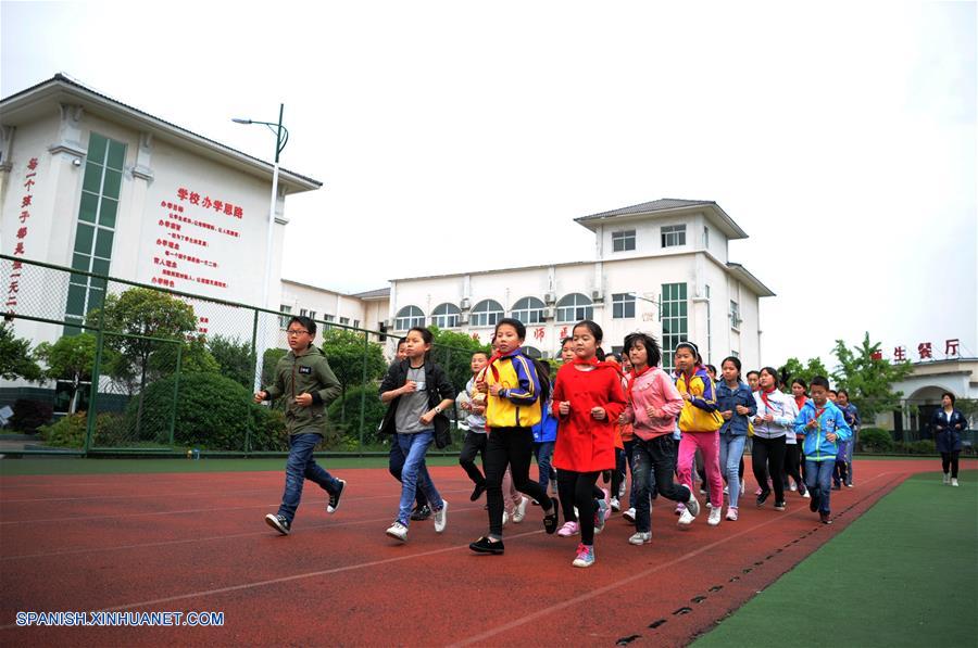 SHAANXI, abril 26, 2018 (Xinhua) -- Imagen del 25 de abril de 2018 de estudiantes caminando en el patio de la escuela primaria Zhongxin del municipio de Wenquan, en el condado de Mianxian de la ciudad de Hanzhong, provincia de Shaanxi, en el noroeste de China. El condado de Mianxian fue afectado por un terremoto devastador que se centró en el condado de Wenchuan en la provincia de Sichuan, en el suroeste de China, el 12 de mayo de 2008. La escuela primaria Zhongxin del municipio de Wenquan fue reconstruida después del terremoto. Las instalaciones de esta escuela han sido mejoradas. Un salón de clase musical, una sala de ense?anza de caligrafía y una biblioteca han sido construidas. Actualmente la escuela cuenta con 470 estudiantes. (Xinhua/Zhang Wenbo)
