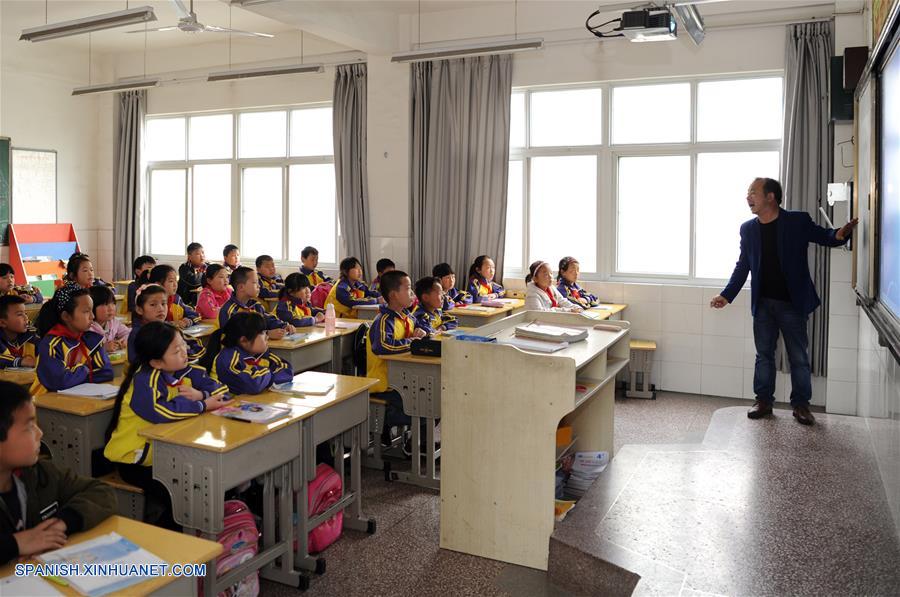SHAANXI, abril 26, 2018 (Xinhua) -- Imagen del 25 de abril de 2018 de estudiantes asistiendo a una clase en la escuela primaria Zhongxin del municipio de Wenquan, en el condado de Mianxian de la ciudad de Hanzhong, provincia de Shaanxi, en el noroeste de China. El condado de Mianxian fue afectado por un terremoto devastador que se centró en el condado de Wenchuan en la provincia de Sichuan, en el suroeste de China, el 12 de mayo de 2008. La escuela primaria Zhongxin del municipio de Wenquan fue reconstruida después del terremoto. Las instalaciones de esta escuela han sido mejoradas. Un salón de clase musical, una sala de ense?anza de caligrafía y una biblioteca han sido construidas. Actualmente la escuela cuenta con 470 estudiantes. (Xinhua/Zhang Wenbo)