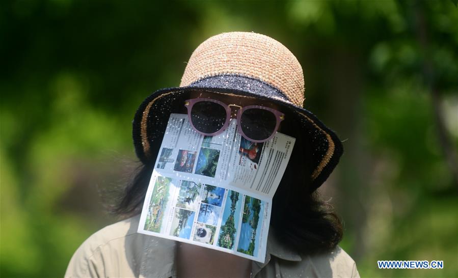 Una mujer se cubre del sol en medio de la gran ola de calor que afecta a Yangzhou, provincia de Jiangsu. Este miércoles se registraron en algunos lugares temperaturas por encima de los 35 grados celsius. 16 de mayo del 2018. (Foto: Xinhua/Huan Yueliang)