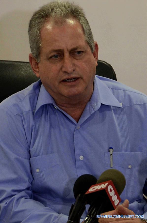 El viceministro cubano de Turismo, Luis Miguel Díaz, participa en una conferencia de prensa sobre el accidente aéreo sucedido en La Habana el viernes, en el Aeropuerto Internacional José Martí, en La Habana, Cuba, el 19 de mayo de 2018. De acuerdo con información de la prensa local, Díaz informó que se instalaron locales para el apoyo médico y psicológico de los familiares de las víctimas fatales del accidente aéreo ocurrido el viernes en La Habana, donde un avión Boeing 737 arrendado por la compa?ía Cubana de Aviación a la empresa mexicana Damojh, se precipitó a tierra cuando despegaba de la Terminal 1 del Aeropuerto Internacional José Martí de La Habana. De las quince víctimas que hasta ahora se han identificado, cinco eran ni?os y diez adultos. (Xinhua/Joaquín Hernández)