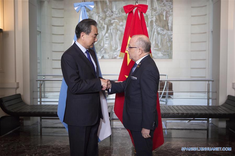 El Consejero de Estado y ministro de Relaciones Exteriores de China, Wang Yi (i), se reúne con el ministro de Relaciones Exteriores de Argentina, Jorge Faurie (d), en Buenos Aires, capital de Argentina, el 20 de mayo de 2018. (Xinhua/Martin Zabala)