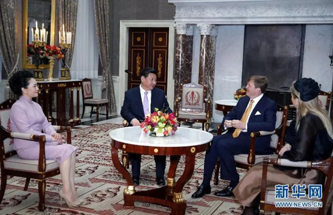 Xi Jinping se reúne con el Rey Willem-Alexander de los Países Bajos en Amsterdam, el 22 de marzo de 2015. [Foto / Xinhua]