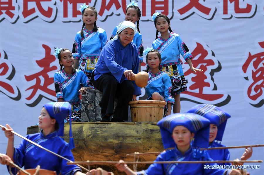 Ni?as y mujeres interpretan una danza drama durante una celebración del Festival Weifeng, en el municipio de Luwei del condado de Binyang, en la Región Autónoma Zhuang de Guangxi, en el sur de China, el 22 de mayo de 2018. Las personas del grupo étnico Zhuang celebran el festival en el octavo día del cuarto mes en el calendario lunar chino. (Xinhua/Lu Bo'an)