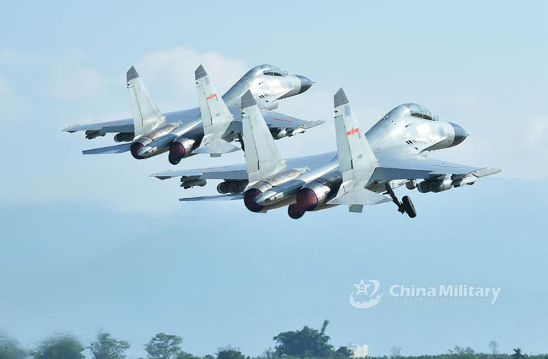 Beijing, 23/05/2018 (El Pueblo en Línea) - Dos cazas de la brigada de aviación de la flota del Mar del Sur de China de la Marina del Ejército Popular de Liberación, el 17 y 18 de mayo realizaron entrenamientos con fuego vivo en un polígono de tiro ubicado en el Mar del Sur de China. (Foto: eng.chinamil.com.cn)