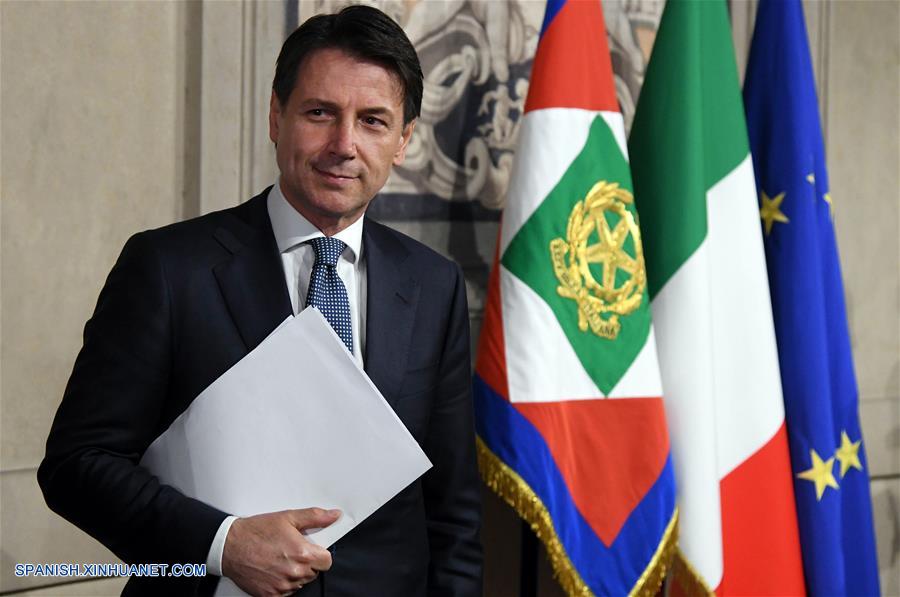 ROMA, mayo 23, 2018 (Xinhua) -- Giuseppe Conte asiste a una conferencia de prensa después de reunirse con el presidente de Italia, Sergio Mattarella, en Roma, Italia, el 23 de mayo de 2018. El presidente de Italia, Sergio Mattarella, nombró el miércoles al profesor de derecho Giuseppe Conte como nuevo primer ministro italiano y le dio el mandato de formar un nuevo gobierno. Conte fue propuesto esta semana por la Liga de derecha y el populista Movimiento Cinco Estrellas, los dos partidos que recibieron más votos en las poco concluyentes elecciones del 4 de marzo. (Xinhua/Alberto Lingria)