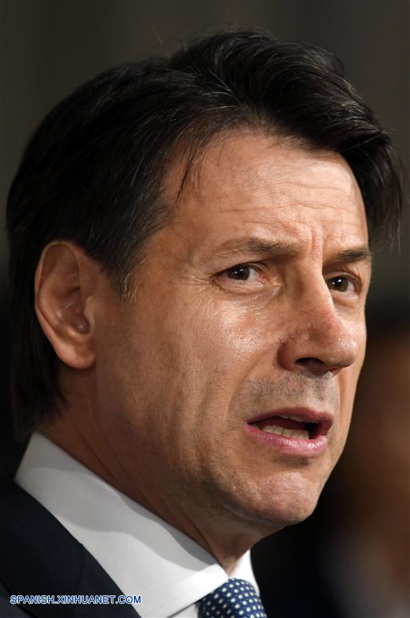 ROMA, mayo 23, 2018 (Xinhua) -- Giuseppe Conte sostiene una conferencia de prensa después de reunirse con el presidente de Italia, Sergio Mattarella, en Roma, Italia, el 23 de mayo de 2018. El presidente de Italia, Sergio Mattarella, nombró el miércoles al profesor de derecho Giuseppe Conte como nuevo primer ministro italiano y le dio el mandato de formar un nuevo gobierno. Conte fue propuesto esta semana por la Liga de derecha y el populista Movimiento Cinco Estrellas, los dos partidos que recibieron más votos en las poco concluyentes elecciones del 4 de marzo. (Xinhua/Alberto Lingria)