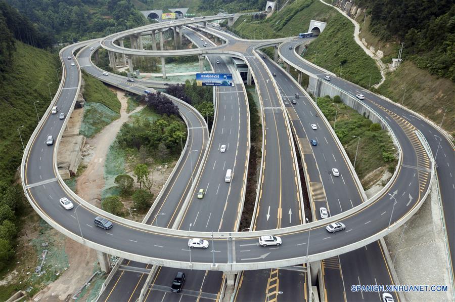 Imagen del 23 de mayo de 2018 de una vista aérea de pasos elevados, en Guiyang, ciudad capital de la provincia de Guizhou, en el suroeste de China. (Xinhua/Cai Yang)