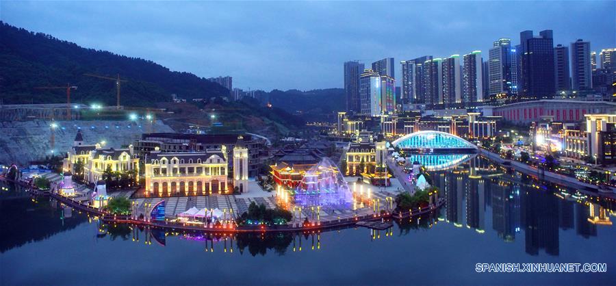 GUIZHOU, mayo 24, 2018 (Xinhua) -- Imagen del 23 de mayo de 2018 de una vista aérea nocturna de Guiyang, ciudad capital de la provincia de Guizhou, en el suroeste de China. (Xinhua/Cai Yang)