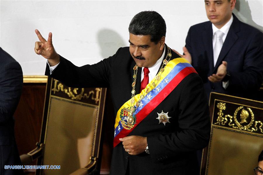CARACAS, mayo 24, 2018 (Xinhua) -- El presidente venezolano, Nicolás Maduro (frente), reacciona durante su acto de juramentación ante la Asamblea Nacional Constituyente (ANC), en el Palacio Federal Legislativo, en Caracas, Venezuela, el 24 de mayo de 2018. (Xinhua/Pedro Mattey/AVN)