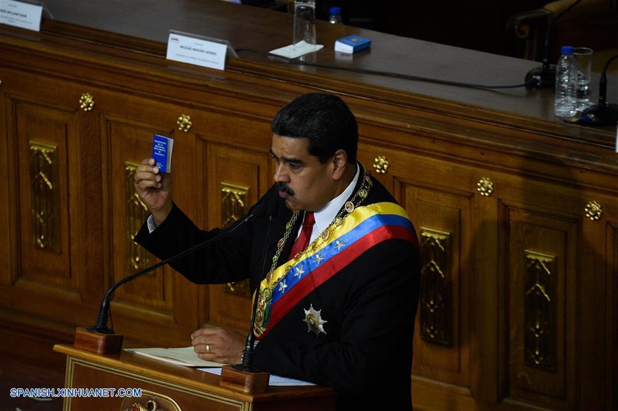 CARACAS, mayo 24, 2018 (Xinhua) -- El presidente venezolano, Nicolás Maduro, pronuncia un discurso durante su acto de juramentación ante la Asamblea Nacional Constituyente (ANC), en el Palacio Federal Legislativo, en Caracas, Venezuela, el 24 de mayo de 2018. (Xinhua/Str)