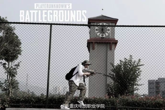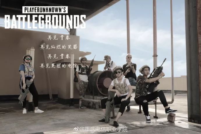 Graduados vestidos como personajes del famoso juego electrónico PlayerUnknown Battlegrounds posan en el campus del Colegio de Información Electrónica en Chongqing.