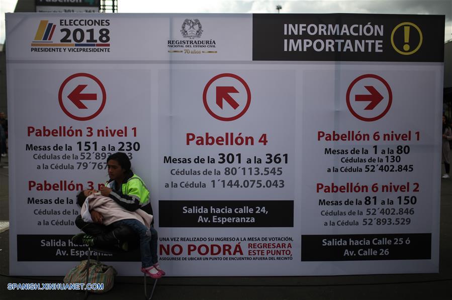 BOGOTA, mayo 27, 2018 (Xinhua) -- Una mujer reacciona junto a una pancarta en el centro más grande de votación Corferias, en Bogotá, Colombia, el 27 de mayo de 2018. El candidato del partido Centro Democrático, Iván Duque, y el del movimiento Colombia Humana, Gustavo Petro, disputarán la segunda vuelta de elecciones presidenciales en Colombia, según informes de la Registraduría Nacional del Estado Civil. Con el 99,46 por ciento de las mesas informadas, Duque obtiene 7.539.930 votos, o el 39,11 por ciento, mientras que Petro recibe 4.838.639 votos, o el 25,10 por ciento.(Xinhua/Jhon Paz)