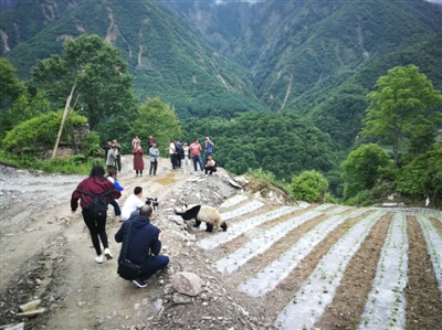 Una panda de 11 a?os visita una aldea en el condado de Wenchuan, provincia de Sichuan. [Foto proporcionada a chinadaily.com.cn]